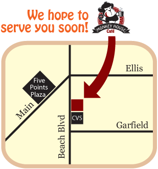 Monkey House Café is located on Beach Boulevard, between the streets of Ellis and Garfield.